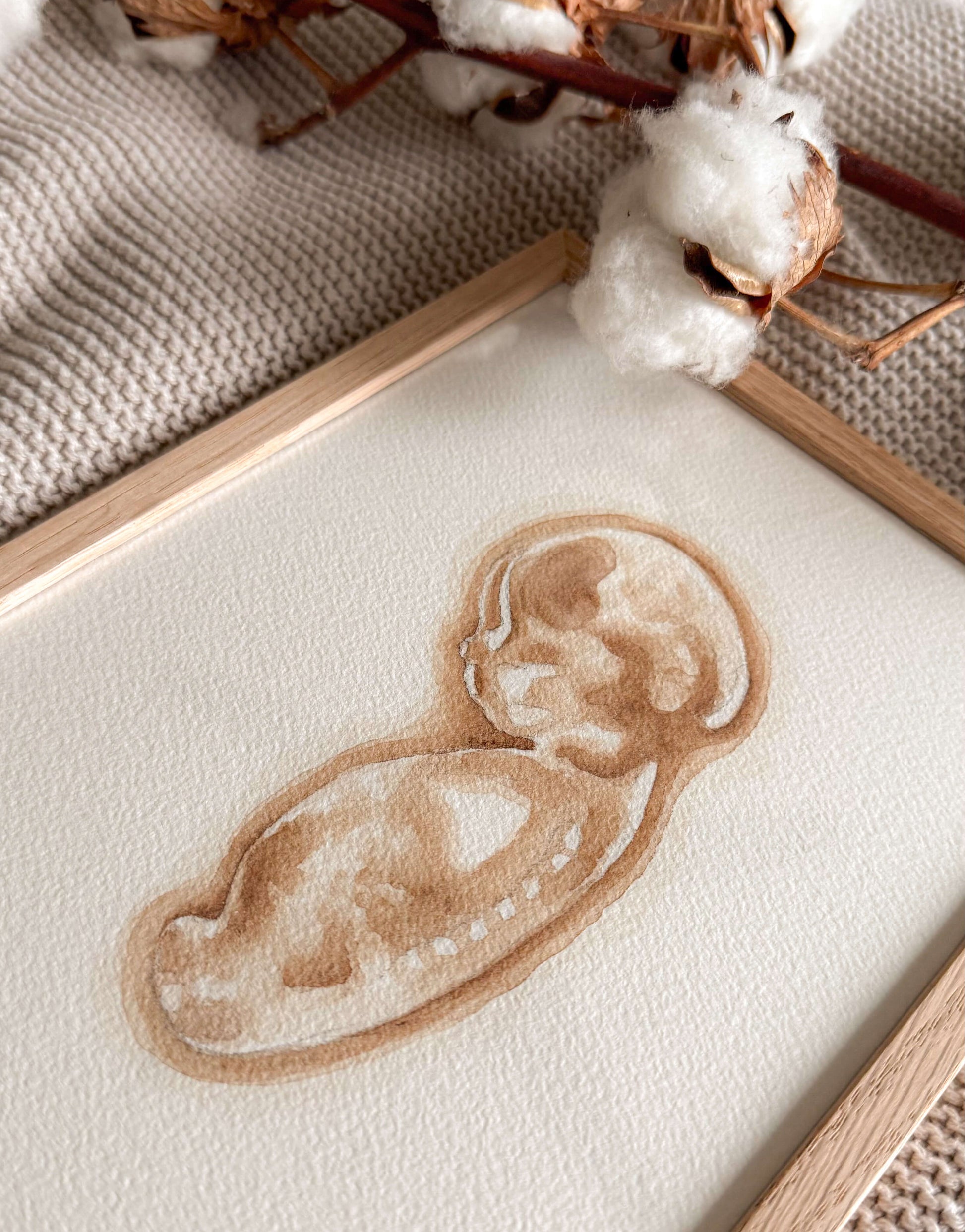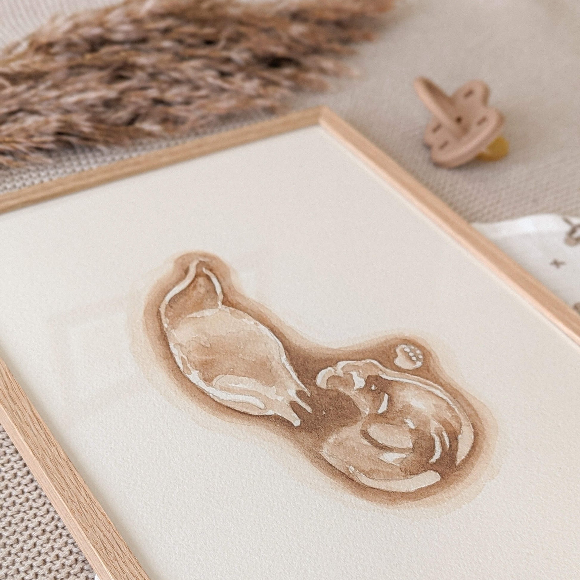 Een aquarel schilderij gemaakt aan de hand van de echo van jouw kindje. Mooi om in te lijsten en op te hangen in de babykamer of als kraamcadea te geven.